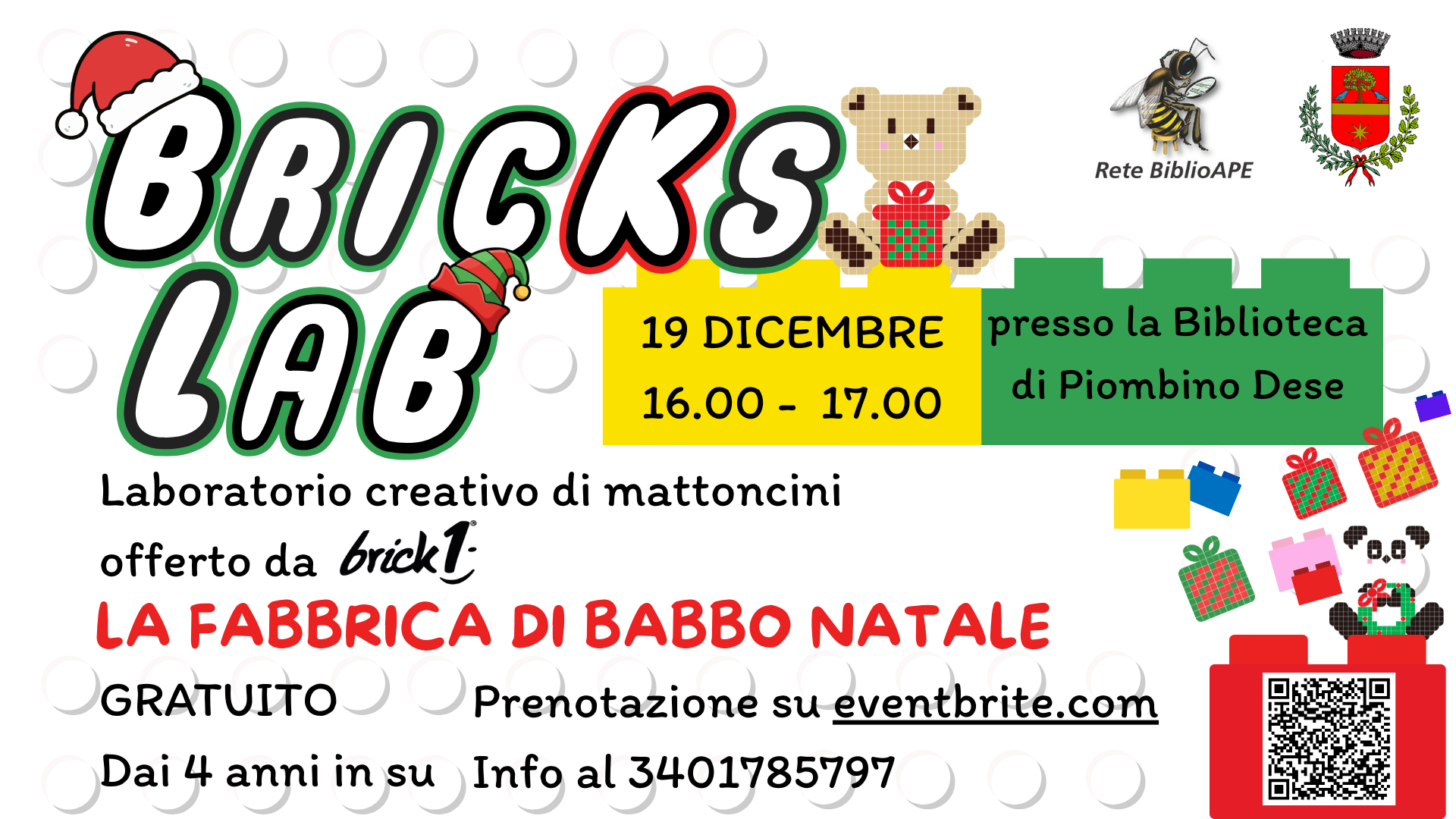 E' gradita la prenotazione al cell. 340-1785797 per il laboratorio creativo di mattoncini (offerto da Brick1), oppure inquadra il QR code.